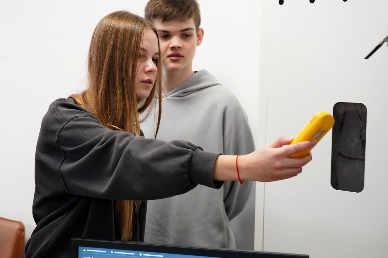 Фахівці Енергоатома не лише доступно пояснили відвідувачам, що таке іонізуюче випромінювання, а й запропонували взяти участь у майстер-класі з користування побутовим дозиметром. У просторій конференц-залі студенти опанували різні режими роботи приладу та самостійно виміряли рівень гамма-фону в обраних точках.
