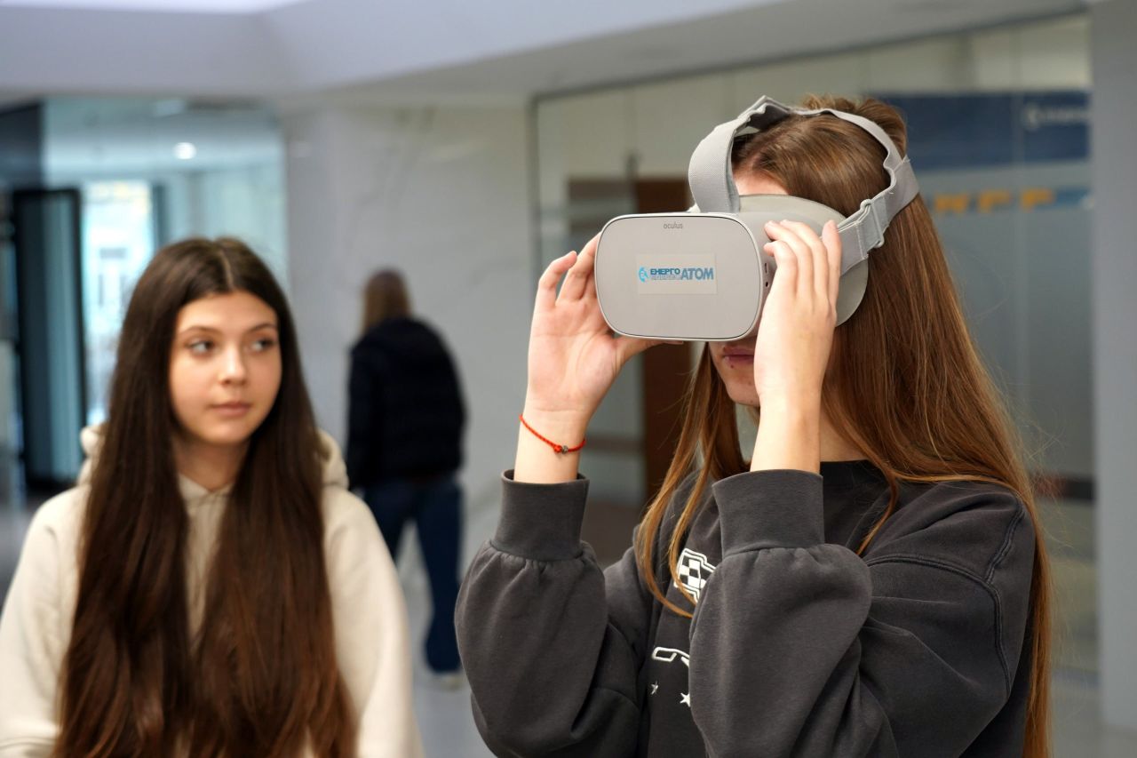 Особливе зацікавлення викликала інтерактивна частина: студенти приміряли VR-окуляри, дослідили макети атомної станції та її ключових систем. Такий формат спілкування надихнув молодь ставити запитання, шукати відповіді й не боятися торкатися складних, але важливих тем.