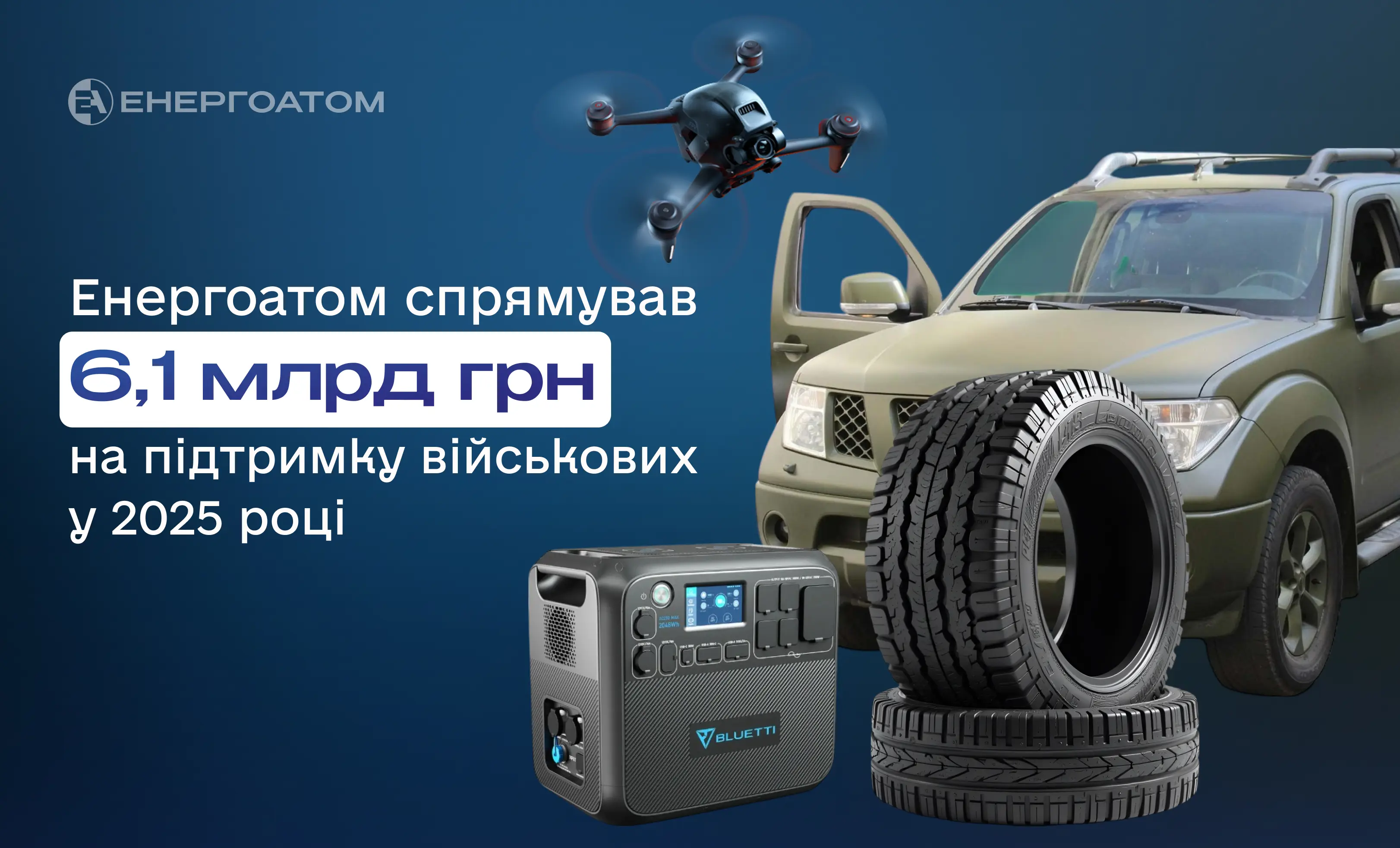 АТ «НАЕК «Енергоатом» продовжує систематичну підтримку українських захисників. Загалом від початку збройної агресії рф компанія спрямувала на потреби військовослужбовців близько 18,6 млрд грн, з яких 6,1 млрд грн – у 2025 році.