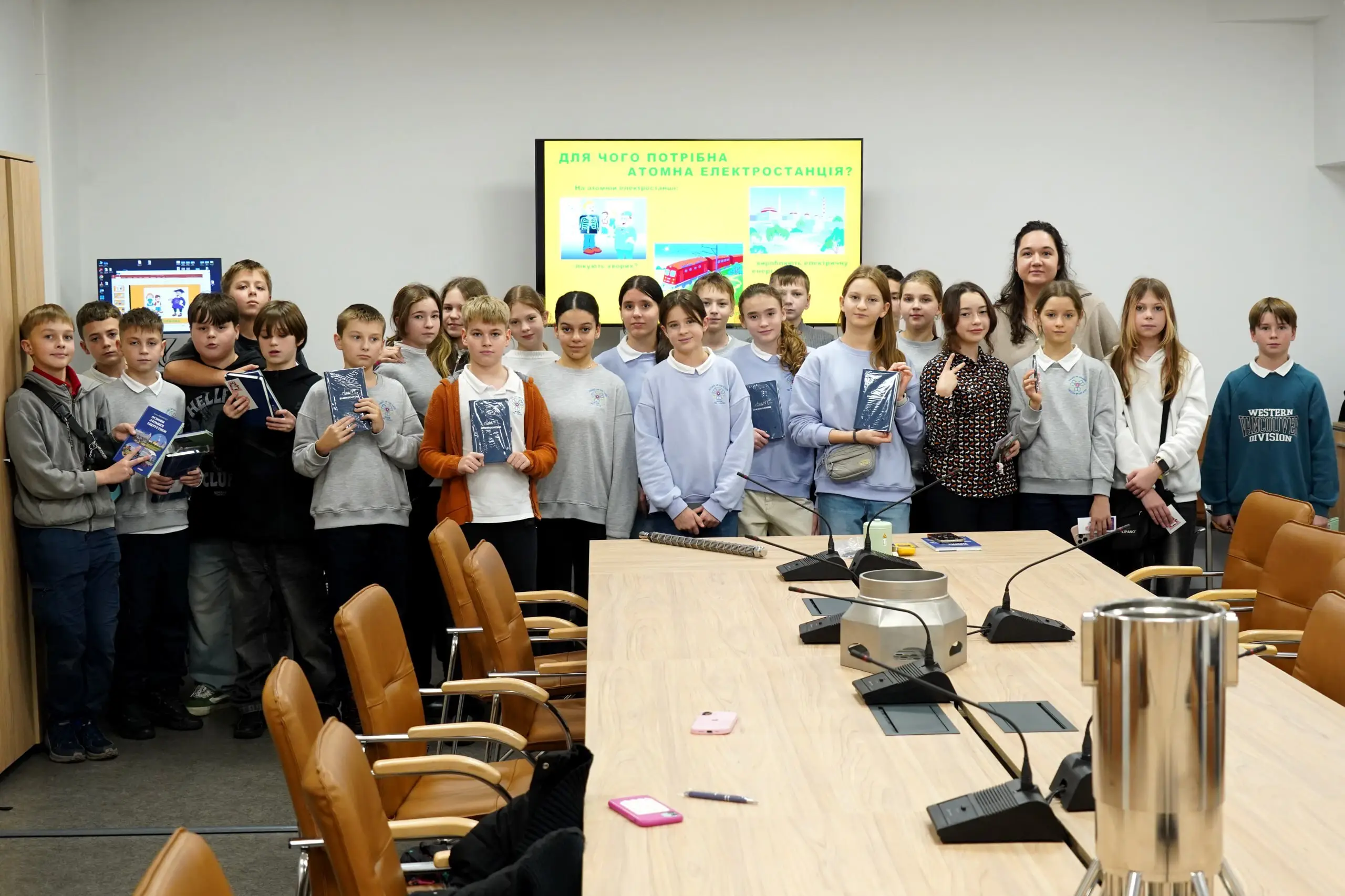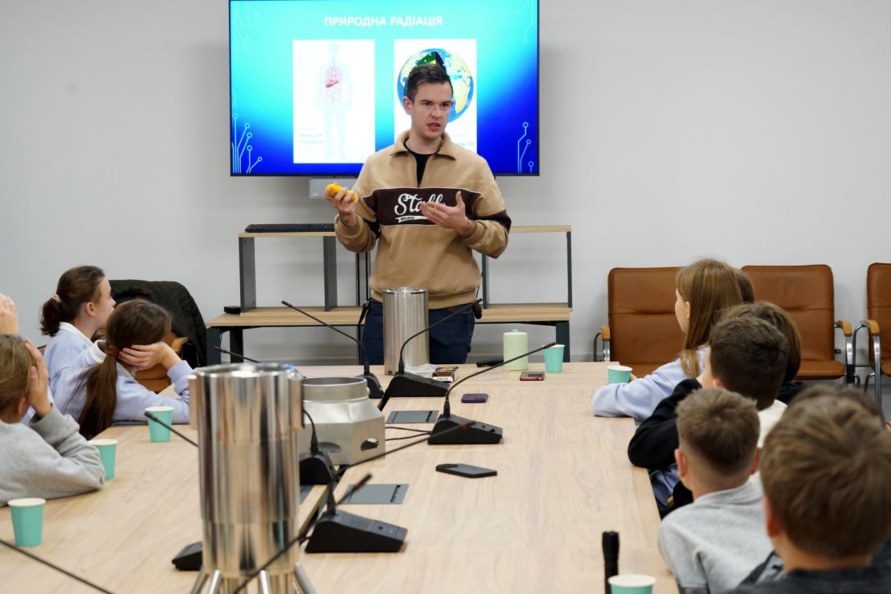 Розмова охопила широкий спектр тем: від значення енергії у нашому житті до виробництва електроенергії та ролі атомної енергетики у розвитку держави. Говорили про те, звідки береться електроенергія, як працює атомна станція та який вплив на довкілля мають різні типи електростанцій. Попри юний вік, школярі слухали уважно – STEM-науки вони вивчають серйозно, тож складні поняття їх не лякають.